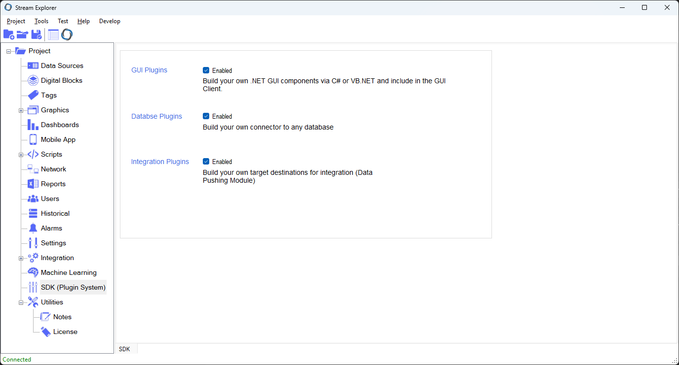 SDK (Plugin System) Enable Plugins Before you use plugins, make sure of two things: 1) You have SDK license activated on this machine . 2) GUI Plugins is enabled.