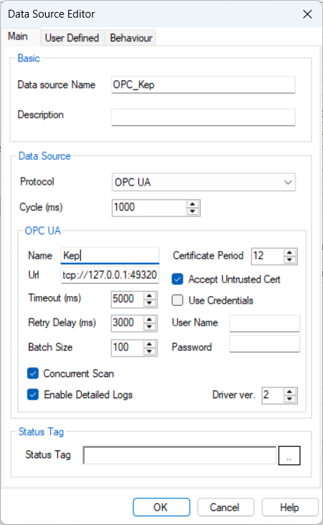 Build (Stream Explorer)Data sourcesOPC UA KEP Server Example Example: KepServer From OPC UA Configuration: Server Endpoints Data Source